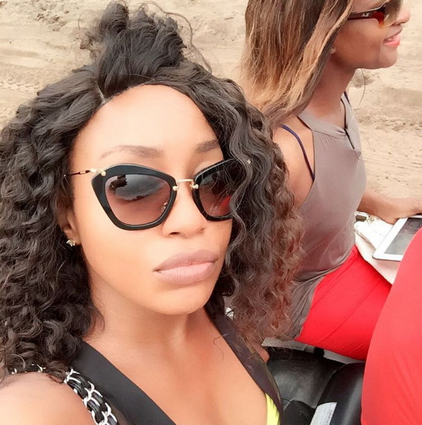 Earlier in the day, she stormed the beach with Nobel Igwe and Linda Ejiofor.