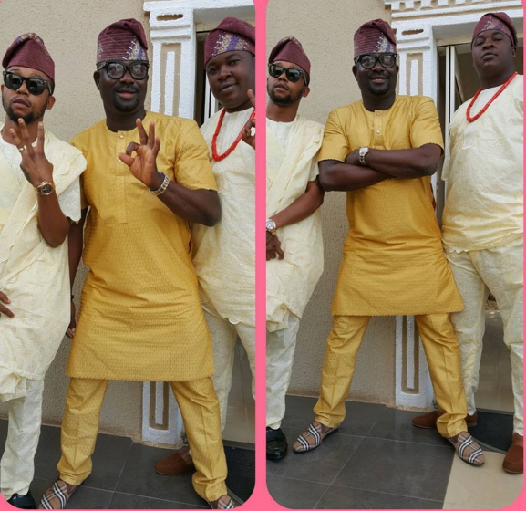 Comic Nollywood actor Olaniyi Afonja aka Sanyeri met his colleagues, Babatunde Benard and Sunkanmi Omobolanle in Ekiti state over the weekend during the burial ceremony of a friend.