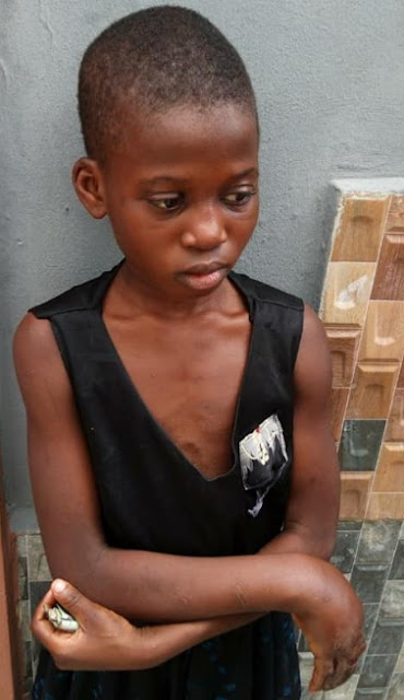 Favour Chimaka who was sent on an errand yesterday was rescued by a Good Samaritan who spotted her decaying finger.