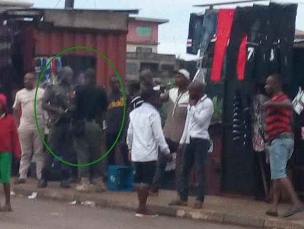 The unidentified police man was seen catching fun with area boys and conductors at Nkpor Motor Park in Onitsha on Friday as passengers watched in shock.
