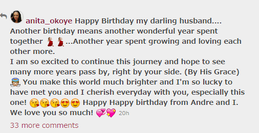 Anita Isamah just dropped a beautiful birthday shutout for her hubby, Paul Okoye.