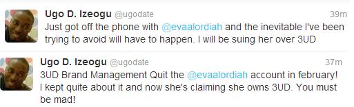 “Just off the phone with @evaalordiah and the inevitable I’ve been trying to avoid will have to happen. I will be suing her over 3UD.