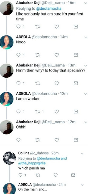 According to her, she got up this morning and discovered that there was no light to iron her cloth so instead of missing church altogether, she opted for a simple dress which ended up in disgrace on getting to church.