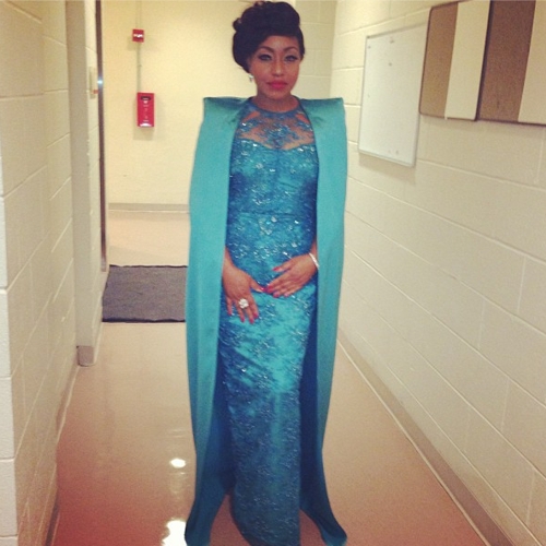 Beautiful Rita Dominic graced the award floor in a slim-fitted dazzling long dress with a matching satin cape.