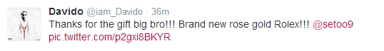 March 1st, 2014 – Samuel Etoo Gives Davido Gold Rolex Watch As Gift