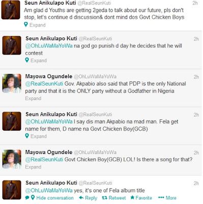 One of the sons of late Fela Anikulapo, Seun Kuti, a popular substance abuse addict took to his Twitter page few days ago to blast Governor Godswill Akpabio of Akwa Ibom State.