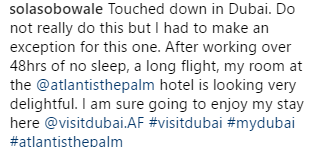 May 16, 2017 – Sola Sobowale Shares Beautiful Night & Inside Views Of Atlantis The Palm Hotel In Dubai
