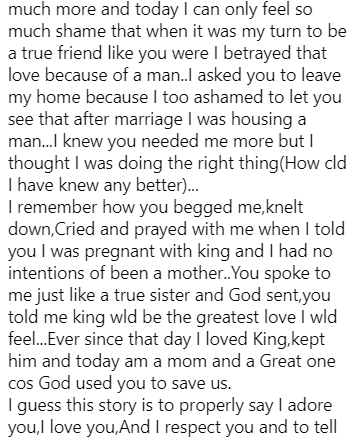 Nollywood actress Tonto Dikeh has finally apologised to a friend she betrayed when she married her now estranged husband, Kunle Churchill.