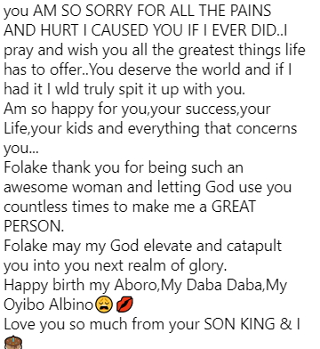 The single mother of one took to her Instagram page on Wednesday to openly apologise to Folake Majekodunmi, the CEO of House of Maflax who celebrated her birthday yesterday.