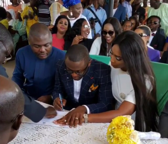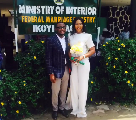 Budding Nollywood actress Lilian Esoro and her fiance Ubi Franklin legalised their union today at the Federal Marriage Registry in Ikoyi Lagos.