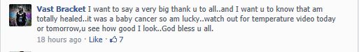 May 11, 2013 – Vast Of Bracket Got Cancer ?… It’s An Old News – Says Vast Himself