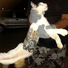 A cat has been detained in the grounds of a jail in Brazil with contraband goods for prisoners strapped to its body with tape.